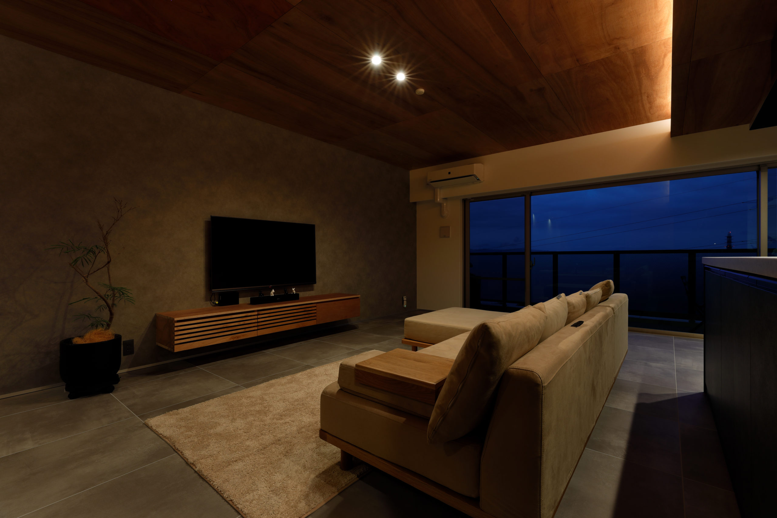 ナチュラルモダンなデザインに仕上がり、リビングの広さや昼夜で変わる雰囲気も気に入っています。